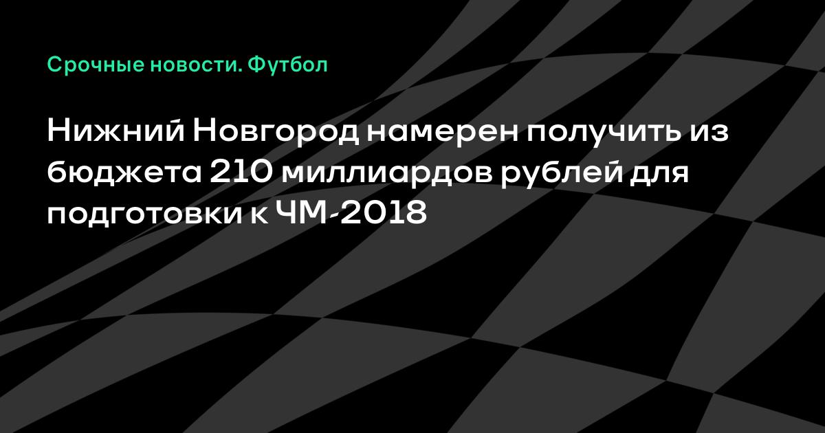 Нижний Новгород намерен получить из бюджета 210 миллиардов рублей для подготовки к ЧМ-2018