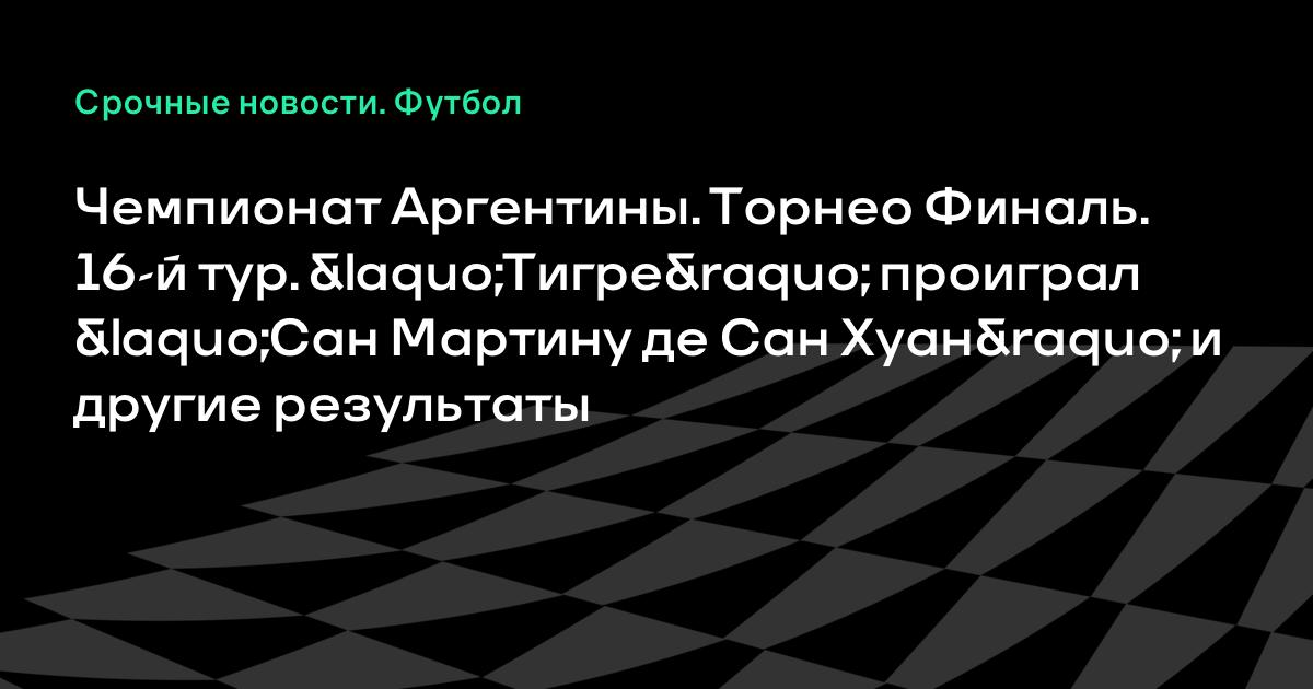 Чемпионат Аргентины. Торнео Финаль. 16-й тур. «Тигре» проиграл «Сан Мартину де Сан Хуан» и другие результаты