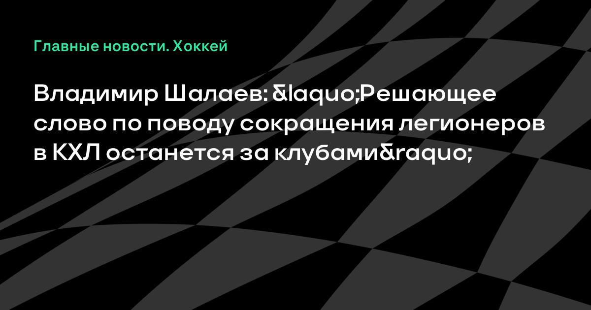 Вообще же такие вопросы должны решаться на серьезных конференциях. Я не могу говорить за всю лигу, поэтому не знаю, готова ли в целом КХЛ идти на сокращение легионеров. Решающее слово в любом случае останется за клубами, как они решат, так и будет», – отметил Шалаев.