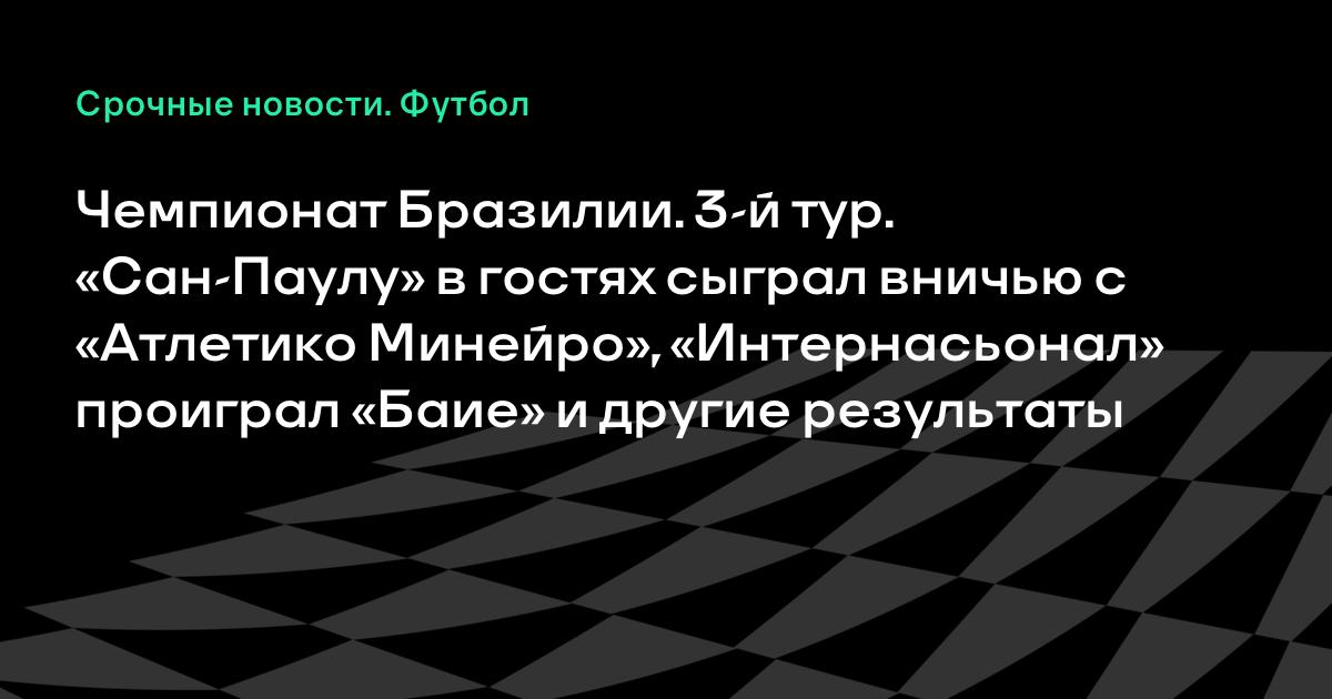 Чемпионат Бразилии. 3-й тур. «Сан-Паулу» в гостях сыграл вничью с «Атлетико Минейро», «Интернасьонал» проиграл «Баие» и другие результаты