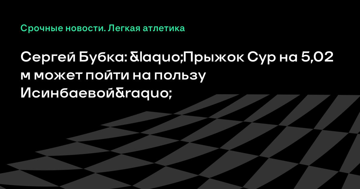 – Мои рекорды тоже били в процессе моей спортивной карьеры. Я знаю, что это такое, и могу сказать – это придает очень хорошую мотивацию. Так что прыжок Сур на 5,02 м вполне может пойти на пользу Исинбаевой», – цитирует Бубку «Весь спорт».