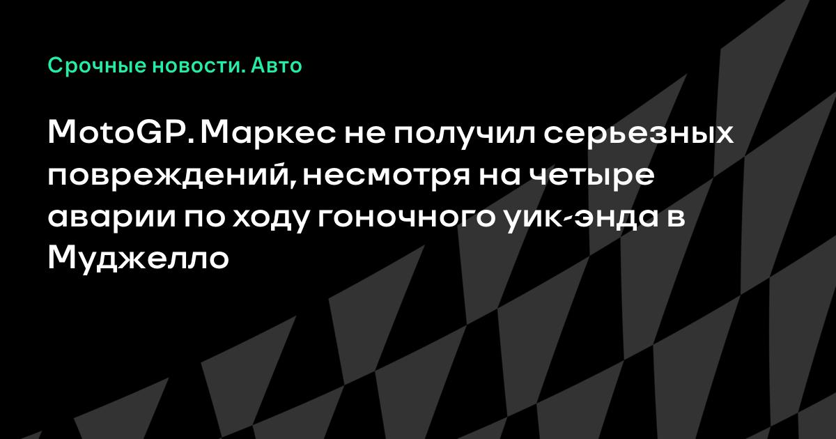 Пилот «Хонды» Марк Маркес избежал получения серьезных травм по ходу гоночного уик-энда в Муджелло, несмотря на то, что четыре раза падал с мотоцикла. Тем не менее, в будущем Маркесу нужно будет посетить больницу для прохождения обследования, сообщает Autosport.