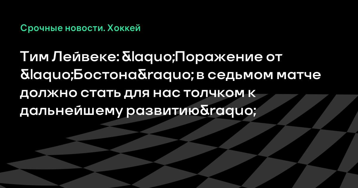 Тим Лейвеке: «Поражение от «Бостона» в седьмом матче должно стать для нас толчком к дальнейшему развитию»