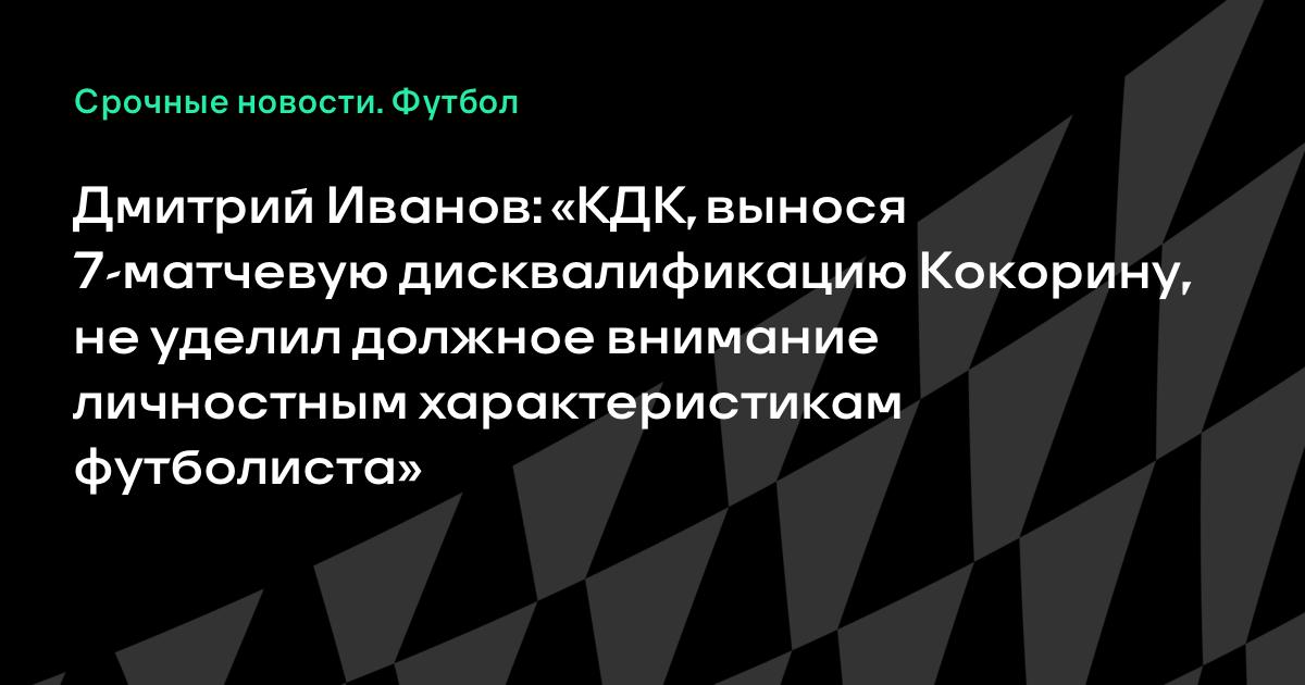 Дмитрий Иванов: «КДК, вынося 7-матчевую дисквалификацию Кокорину, не уделил должное внимание личностным характеристикам футболиста»