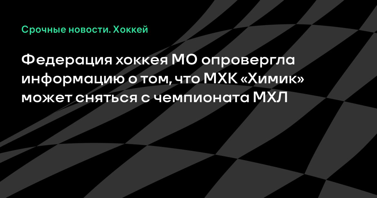 Федерация хоккея МО опровергла информацию о том, что МХК «Химик» может сняться с чемпионата МХЛ