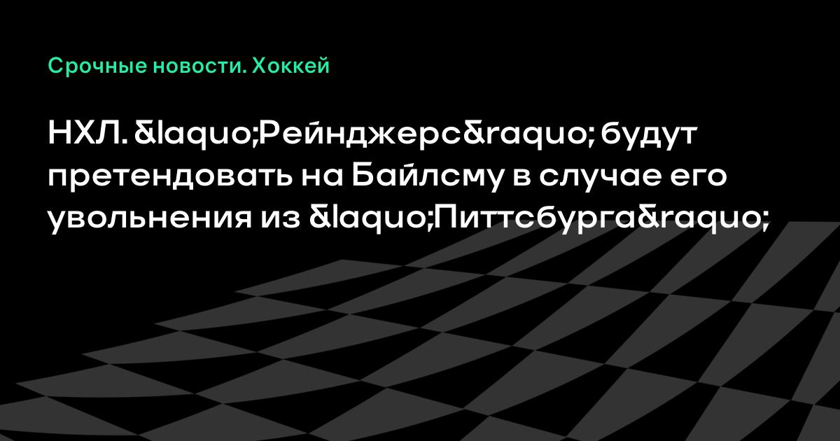 «Рейнджерс» будут претендовать на Дэна Байлсму в случае его увольнения с поста главного тренера «Питтсбурга» после поражения 0-4 от «Бостона» в финале конференции, сообщает журналист New York Post Ларри Брукс.
