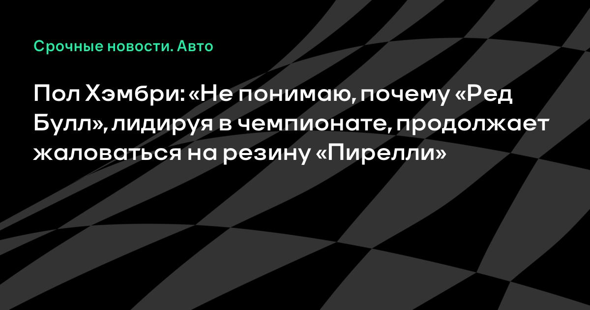 Руководитель автоспортивного подразделения «Пирелли» Пол Хэмбри выразил недоумение тем, что команда «Ред Булл», несмотря на лидерство в чемпионате, продолжает жаловаться на резину.