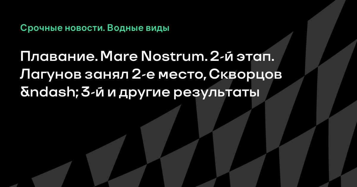 Плавание. Mare Nostrum. 2-й этап. Лагунов занял 2-е место, Скворцов – 3-й и другие результаты