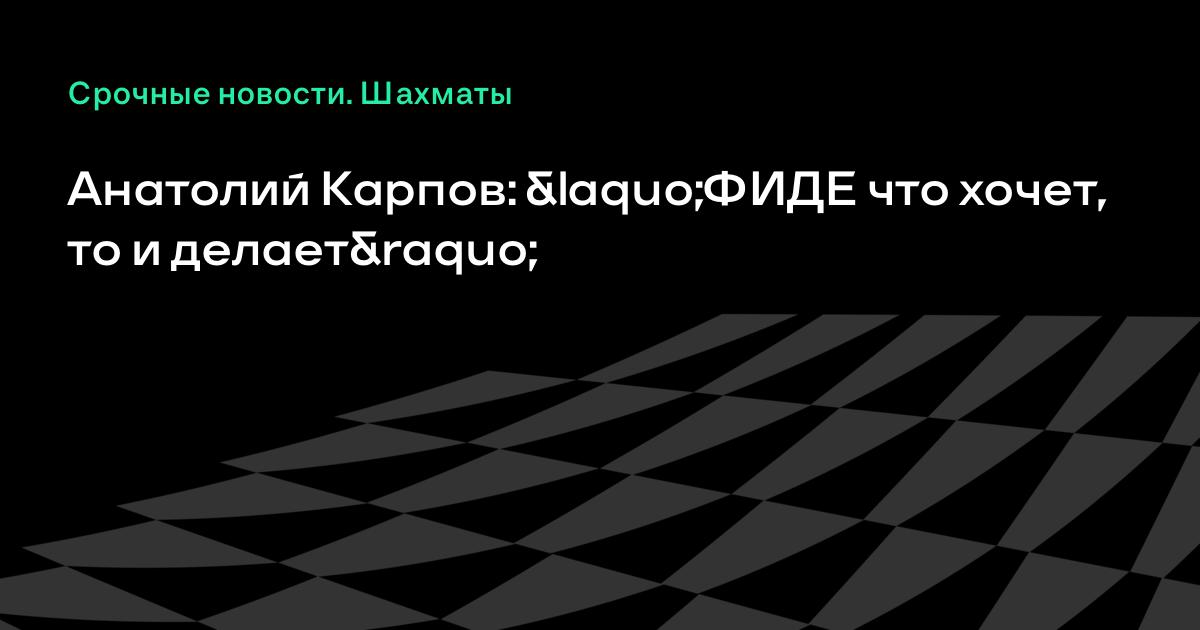Анатолий Карпов: «ФИДЕ что хочет, то и делает»