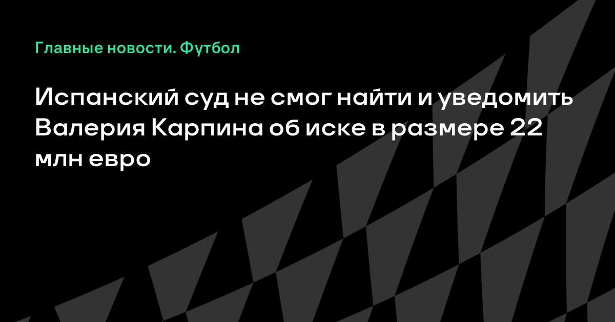 Суд первой инстанции испанского города Виго не смог найти и уведомить главного тренера московского «Спартака» Валерия Карпина об иске в размере 22 млн евро, который необходимо погасить в течение нескольких недель. Согласно этому иску компания Карпина должна погасить задолженность по кредиту на недвижимость.