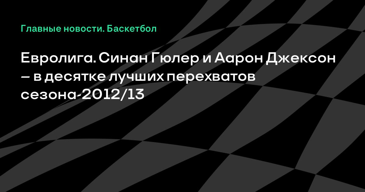 15 июня 2013, 10:48 Евролига. Синан Гюлер и Аарон Джексон – в десятке лучших перехватов сезона-2012/13 Синан Гюлер и Аарон Джексон – в десятке лучших перехватов Евролиги сезона-2012/13. Баскетбол Евролига Баскетбол - видео