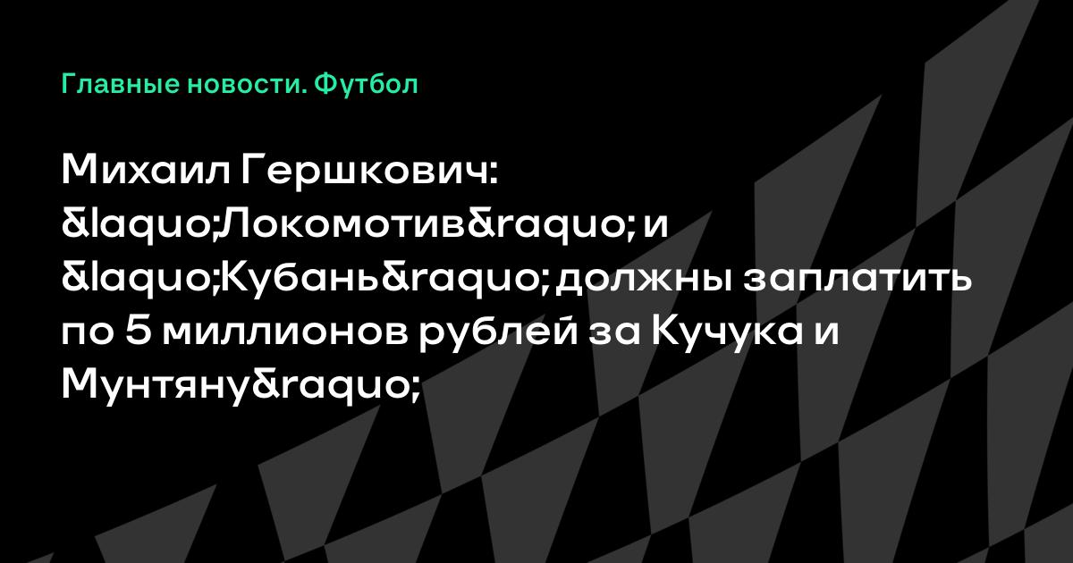 Михаил Гершкович: «Локомотив» и «Кубань» должны заплатить по 5 миллионов рублей за Кучука и Мунтяну»
