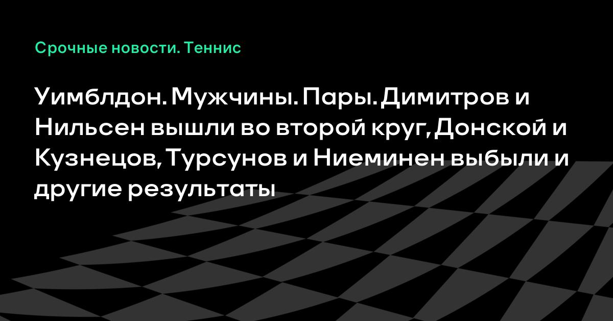 Уимблдон. Мужчины. Пары. Димитров и Нильсен вышли во второй круг, Донской и Кузнецов, Турсунов и Ниеминен выбыли и другие результаты