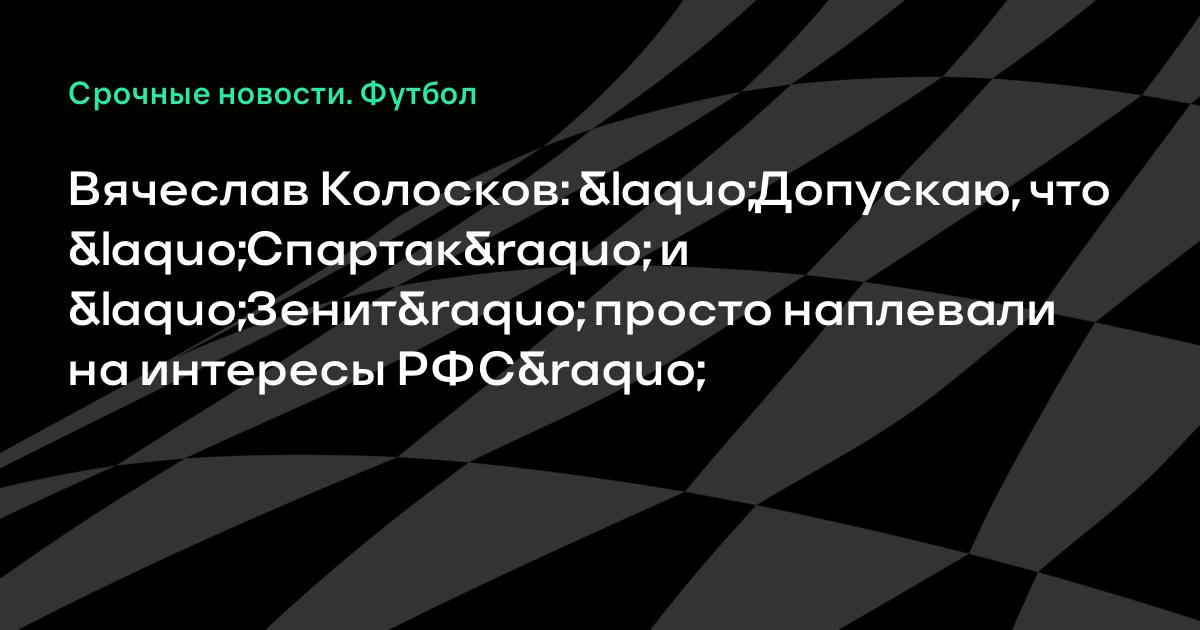 Вячеслав Колосков: «Допускаю, что «Спартак» и «Зенит» просто наплевали на интересы РФС»