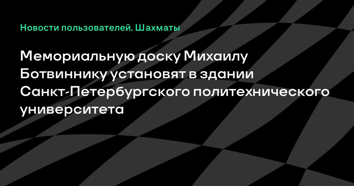 Мемориальную доску Михаилу Ботвиннику установят в здании Санкт-Петербургского политехнического университета