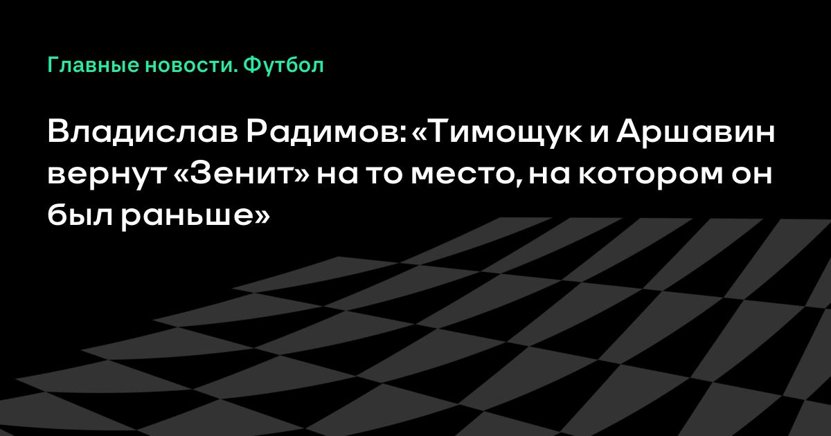 Владислав Радимов: «Тимощук и Аршавин вернут «Зенит» на то место, на котором он был раньше»
