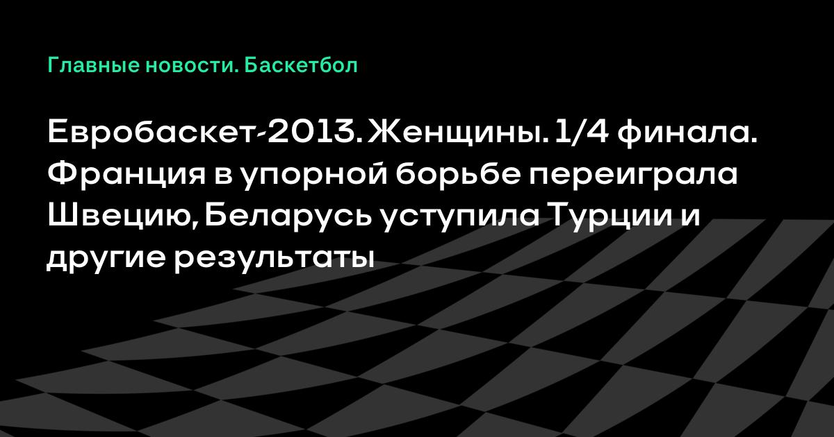 Евробаскет-2013. Женщины. 1/4 финала. Франция в упорной борьбе переиграла Швецию, Беларусь уступила Турции и другие результаты