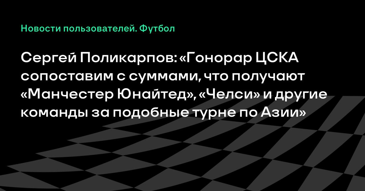 Сергей Поликарпов: «Гонорар ЦСКА сопоставим с суммами, что получают «Манчестер Юнайтед», «Челси» и другие команды за подобные турне по Азии»
