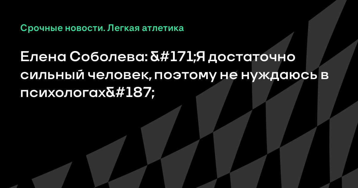 Российская бегунья Елена Соболева рассказала о возможной дисквалификации и призналась, что не нуждается в помощи психолога.