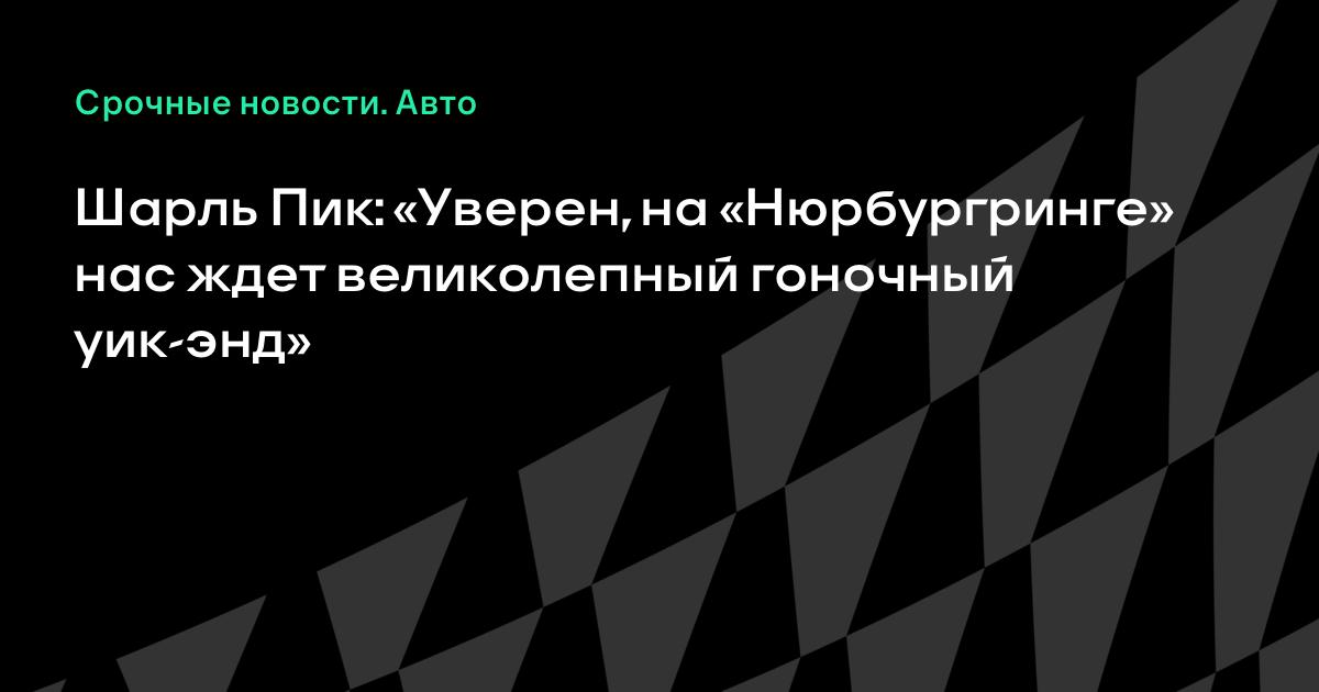 Шарль Пик: «Уверен, на «Нюрбургринге» нас ждет великолепный гоночный уик-энд»
