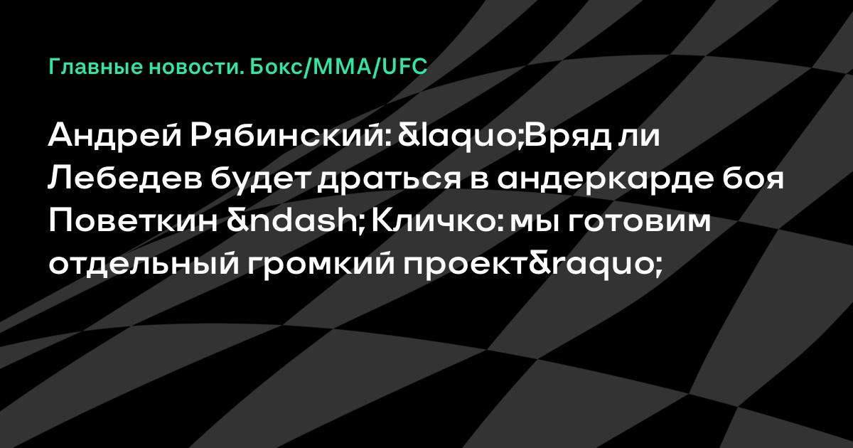 – Следите за новостями про Дениса Лебедева. Думаю, через месяц расскажу, – цитирует Рябинского «Советский спорт».