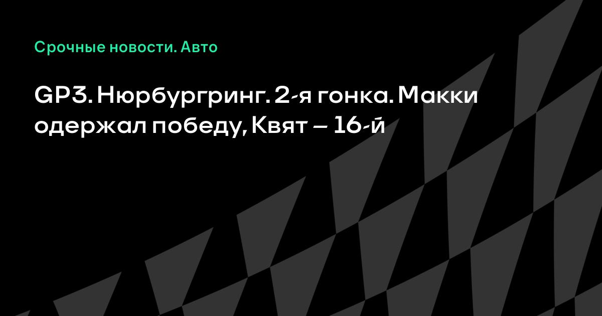 Во второй гонке серии GP3 на «Нюрбургринге» победу одержал Мелвилл Макки, второе место занял Александр Симс, а третье – Ник Йеллоли. Россиянин Даниил Квят, стартовавший в гонке 25-м, финишировал на 16-м месте.