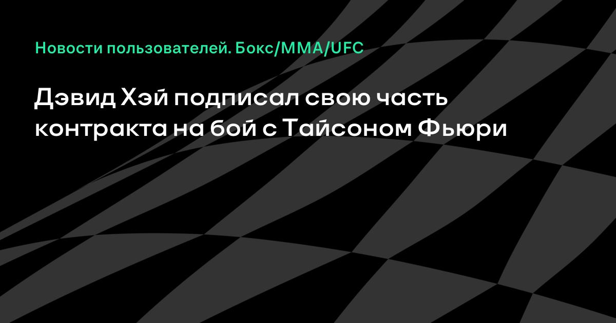 Всего час назад экс-чемпион мира в двух весовых категориях 32-летний британец Дэвид Хэй опубликовал видео, на котором он подписывает свою часть контракта на поединок 28 сентября против Тайсона Фьюри. Напомним, что переговоры по этому поединку длятся уже несколько недель и сопровождаются различными сложностями, которые по большей части создает Фьюри, как в случае, когда он заявил о том, что хочет для себя 80% от общего гонорара поединка. «Только что подписал контракт на бой с Фьюри 28 сентября, — заявил Хэй. — Будем надеяться, что он наконец-то согласится и подпишет контракт сегодня».