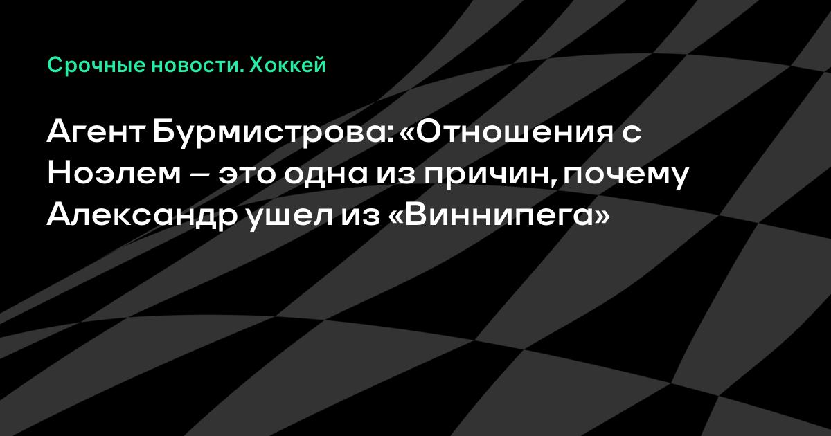 Агент Бурмистрова: «Отношения с Ноэлем – это одна из причин, почему Александр ушел из «Виннипега»