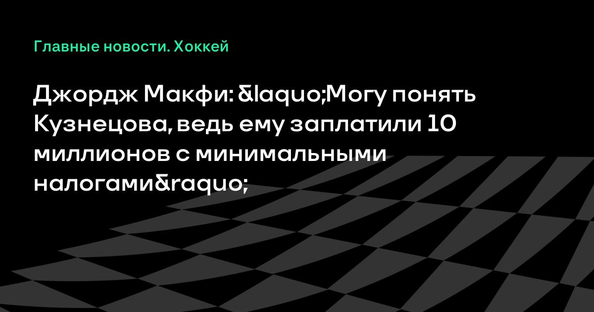 Джордж Макфи: «Могу понять Кузнецова, ведь ему заплатили 10 миллионов с минимальными налогами»