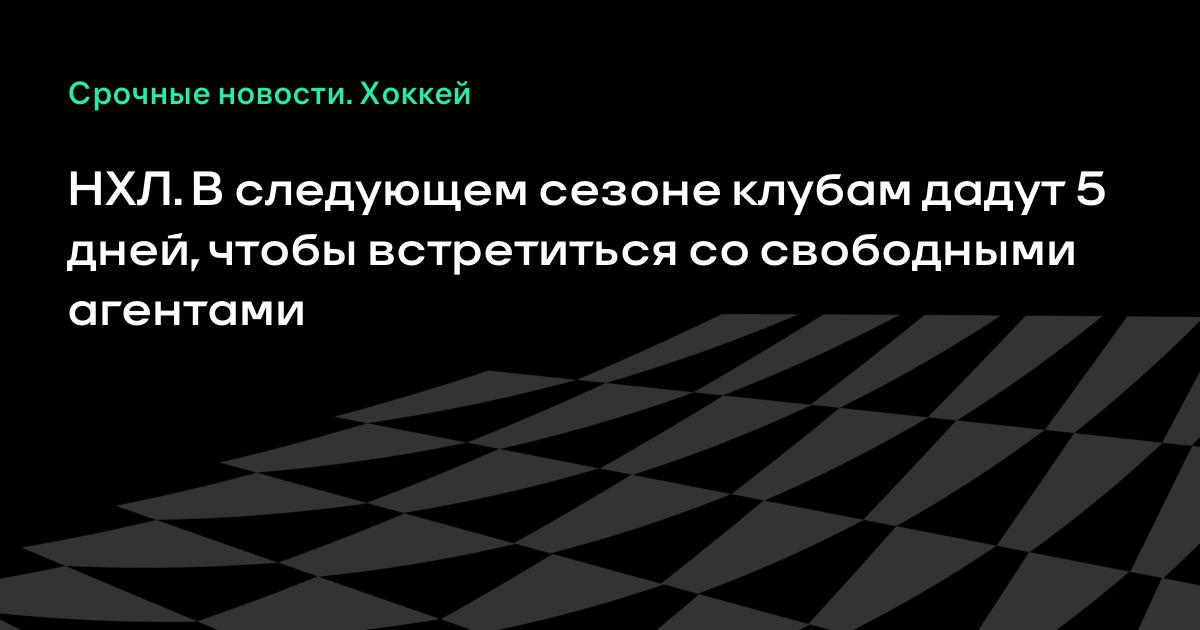 НХЛ увеличит период, в течение которого клубы могут проводить встречи со свободными агентами перед тем, как откроется рынок, с 2 двух дней до 5, сообщает журналист ESPN Крэйг Кастэнс.«Честно говоря, это было очень похоже на то, что происходило 1 июля в предыдущие сезоны. Необходимо было действовать очень быстро и сразу включаться в игру.