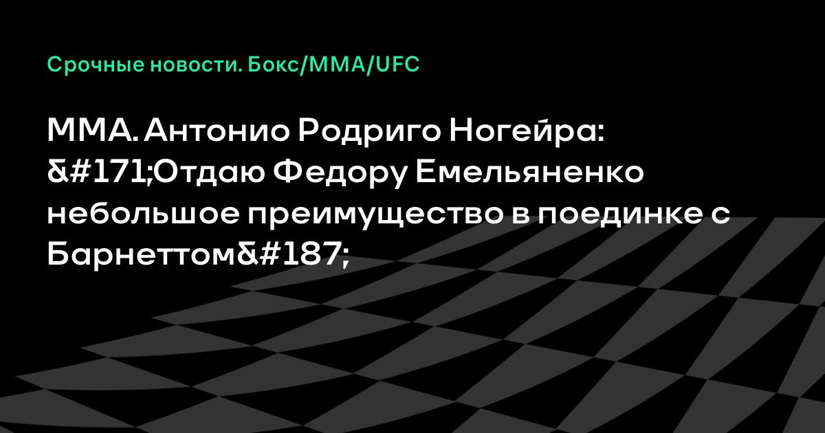 MMA. Антонио Родриго Ногейра: «Отдаю Федору Емельяненко небольшое преимущество в поединке с Барнеттом»