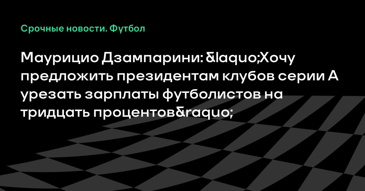 Маурицио Дзампарини: «Хочу предложить президентам клубов серии А урезать зарплаты футболистов на тридцать процентов»