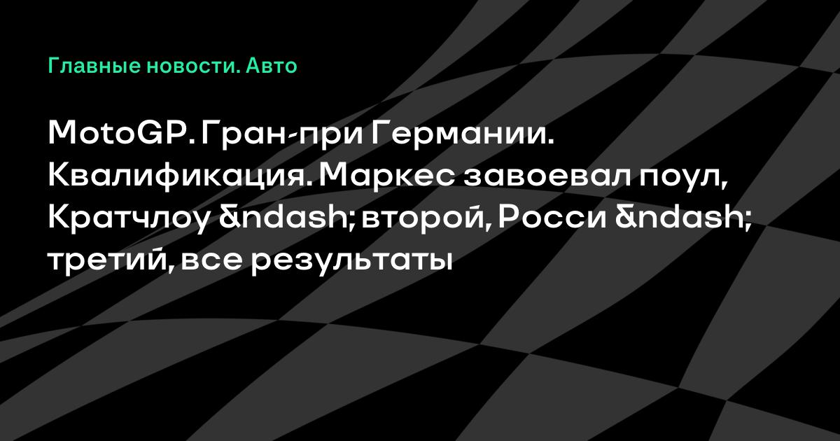 MotoGP. Гран-при Германии. Квалификация. Маркес завоевал поул, Кратчлоу – второй, Росси – третий, все результаты