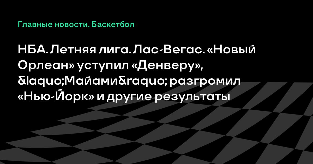 Сегодня в рамках Летней лиги НБА в Лас-Вегасе «Новый Орлеан» уступил «Денверу» (82:87). В другом матче «Майами» разгромил «Нью-Йорк» (113:66).