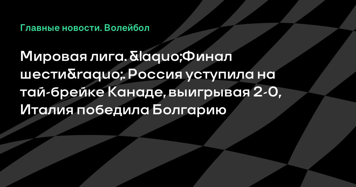 Мировая лига. «Финал шести». Россия уступила на тай-брейке Канаде, выигрывая 2-0, Италия победила Болгарию