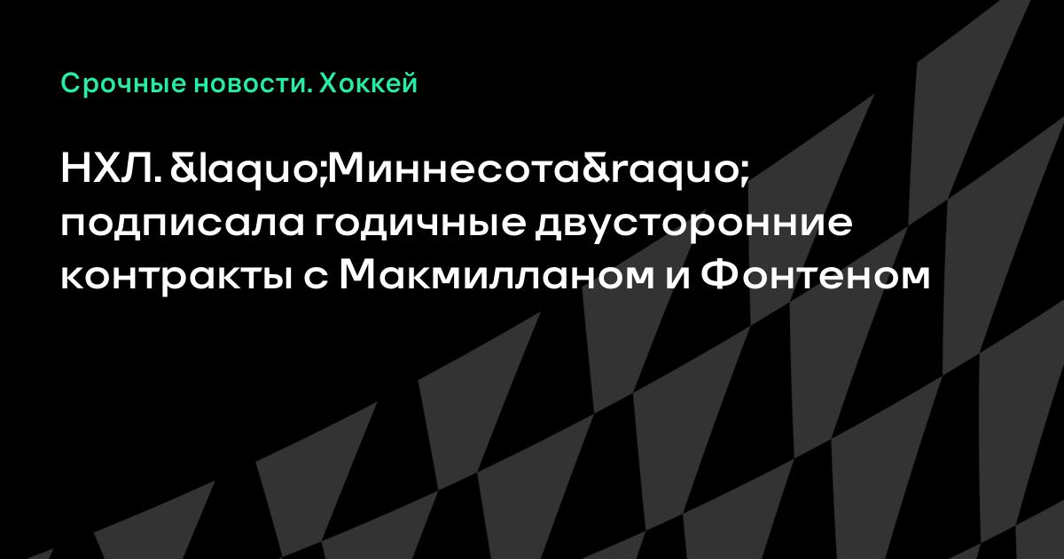 НХЛ. «Миннесота» подписала годичные двусторонние контракты с Макмилланом и Фонтеном