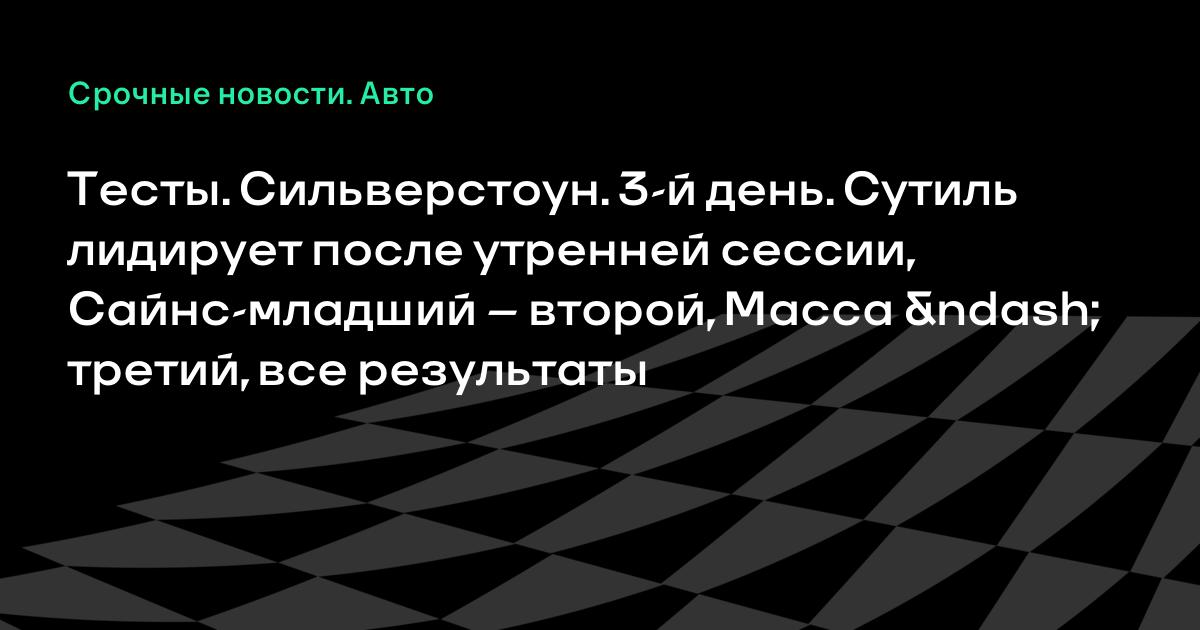 Тесты. Сильверстоун. 3-й день. Сутиль лидирует после утренней сессии, Сайнс-младший – второй, Масса – третий, все результаты
