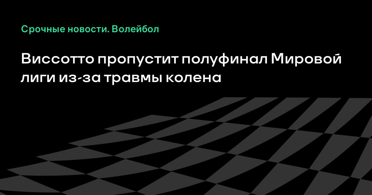 Чемпион мира, диагональный сборной Бразилии Леандро Виссотто пропустит полуфинал Мировой лиги против Болгарии из-за травмы левого колена, сообщает официальный твиттер турнира.