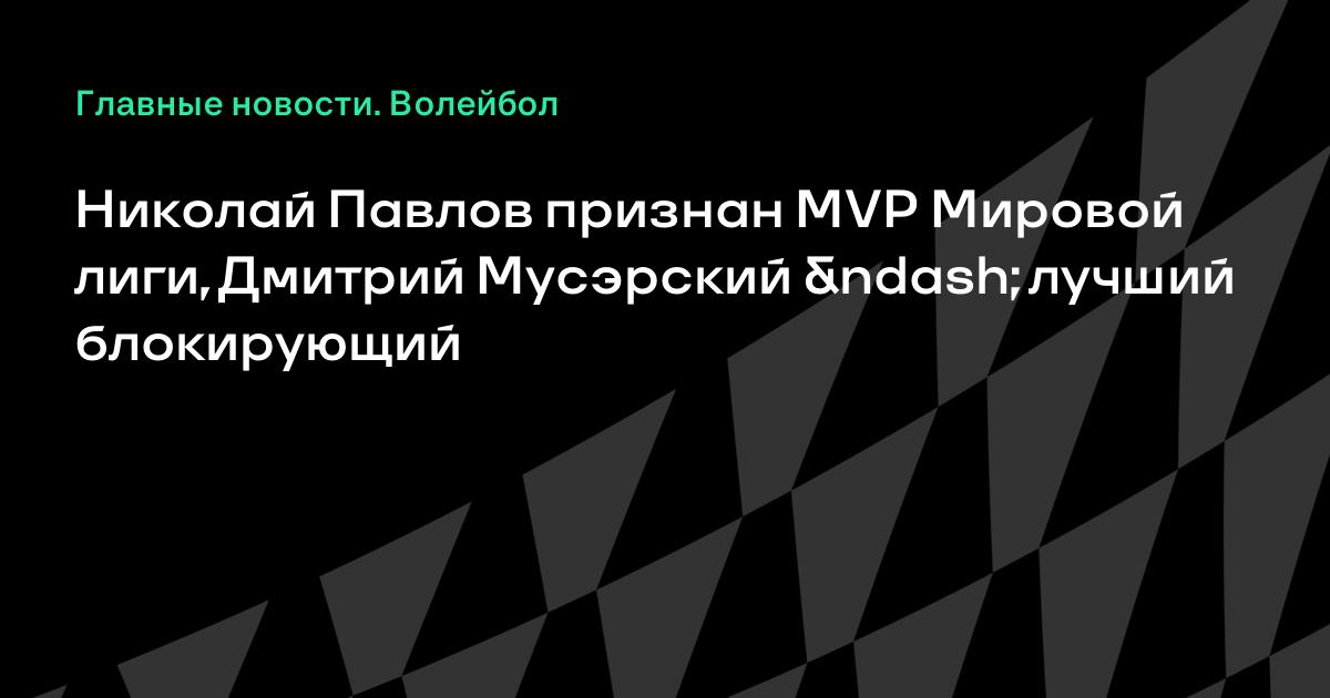 Николай Павлов признан MVP Мировой лиги, Дмитрий Мусэрский – лучший блокирующий