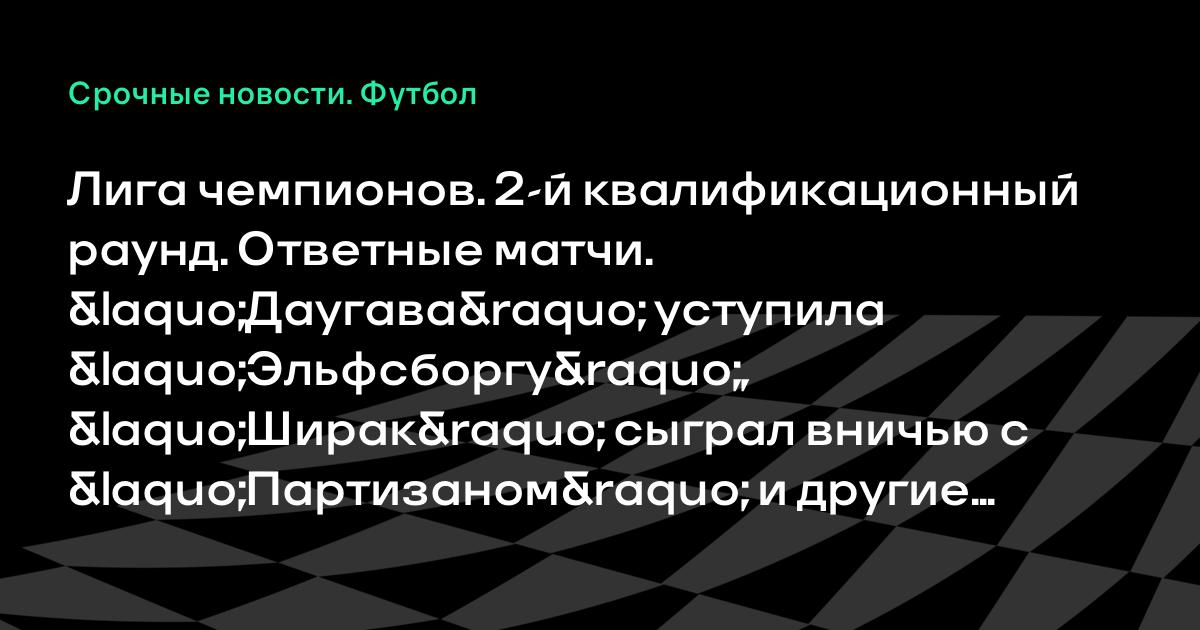 Лига чемпионов. 2-й квалификационный раунд. Ответные матчи. «Даугава» уступила «Эльфсборгу», «Ширак» сыграл вничью с «Партизаном» и другие результаты