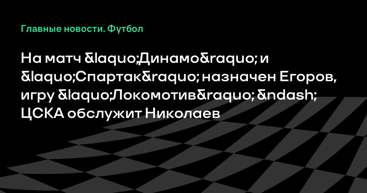 На матч «Динамо» и «Спартак» назначен Егоров, игру «Локомотив» – ЦСКА обслужит Николаев