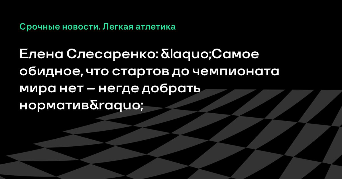 Надеюсь, что наше руководство предусмотрело такие случаи – для тех, у кого нет норматива, и они должны решить, кто способен принести медали на чемпионате мира нашей стране. Я буду стараться! Я сделаю все возможное и невозможное, и даже больше», – рассказала Слесаренко в интервью агентству «Весь спорт».
