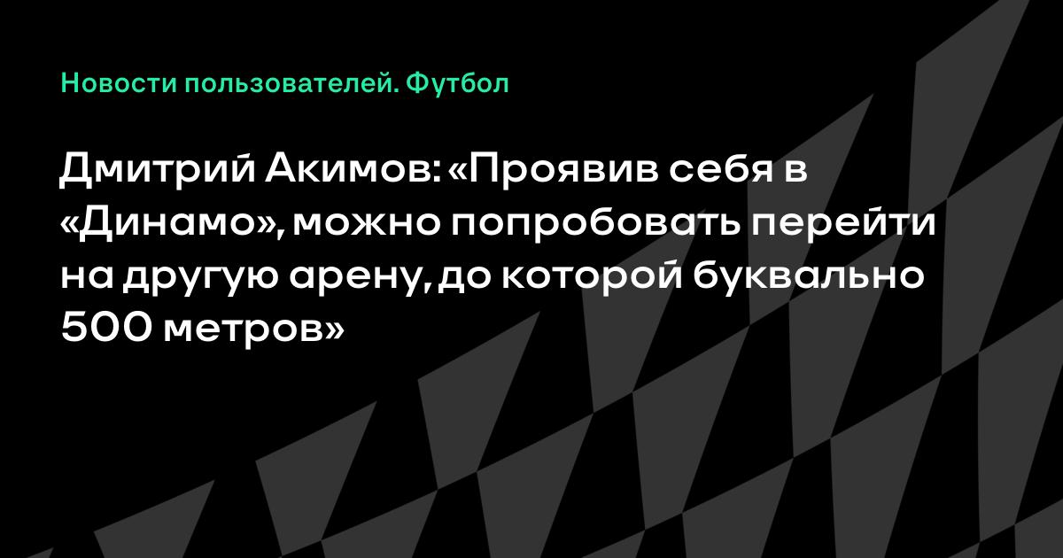 Дмитрий Акимов: «Проявив себя в «Динамо», можно попробовать перейти на другую арену, до которой буквально 500 метров»