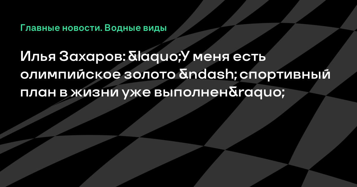 Илья Захаров: «У меня есть олимпийское золото – спортивный план в жизни уже выполнен»