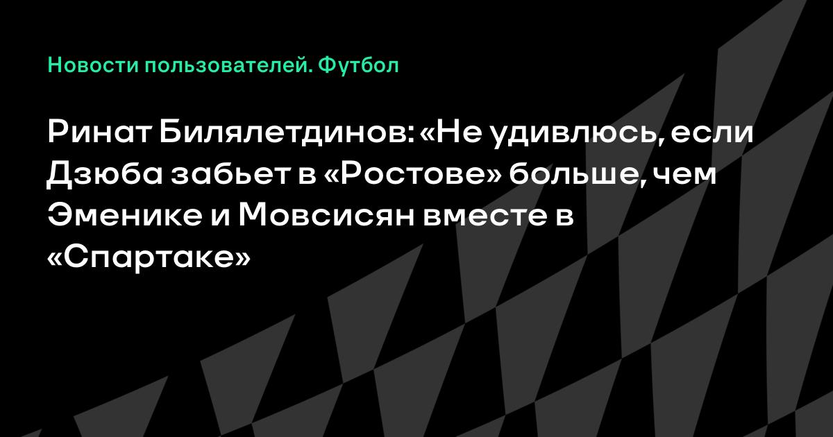 Опять же, в «Ростове» его никто не будет ругать за пару-тройку невыразительных игр, чего нельзя представить в «Спартаке». Да и впереди, в штрафной площади Артем себя чувствует, как рыба в воде. Поэтому я не удивлюсь, если Дзюба забьет в «Ростове» в итоге больше мячей, чем Эменике и Мовсисян вместе в «Спартаке», — сказал Билялетдинов.