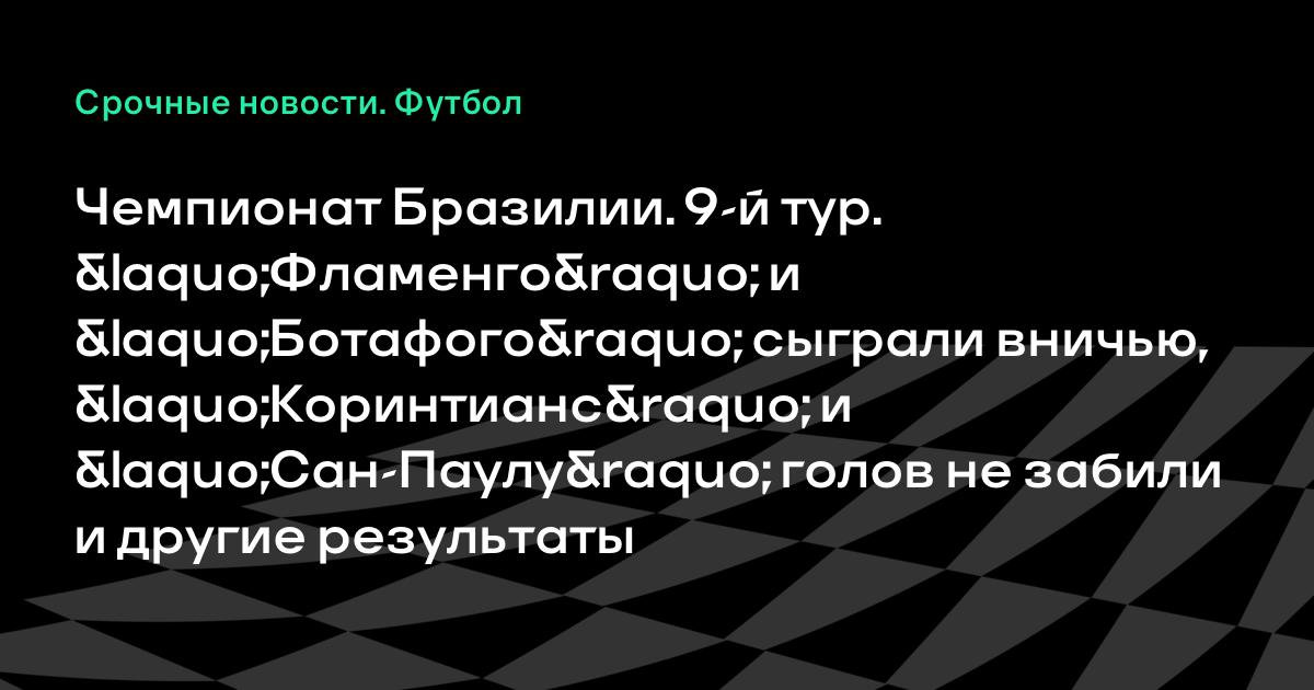 Чемпионат Бразилии. 9-й тур. «Фламенго» и «Ботафого» сыграли вничью, «Коринтианс» и «Сан-Паулу» голов не забили и другие результаты