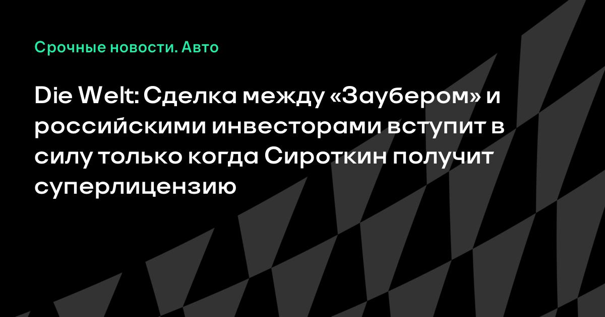 Die Welt: Сделка между «Заубером» и российскими инвесторами вступит в силу только когда Сироткин получит суперлицензию