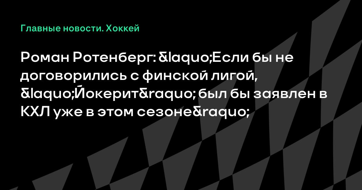 Роман Ротенберг: «Если бы не договорились с финской лигой, «Йокерит» был бы заявлен в КХЛ уже в этом сезоне»
