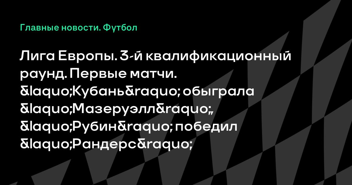 Лига Европы. 3-й квалификационный раунд. Первые матчи. «Кубань» обыграла «Мазеруэлл», «Рубин» победил «Рандерс»