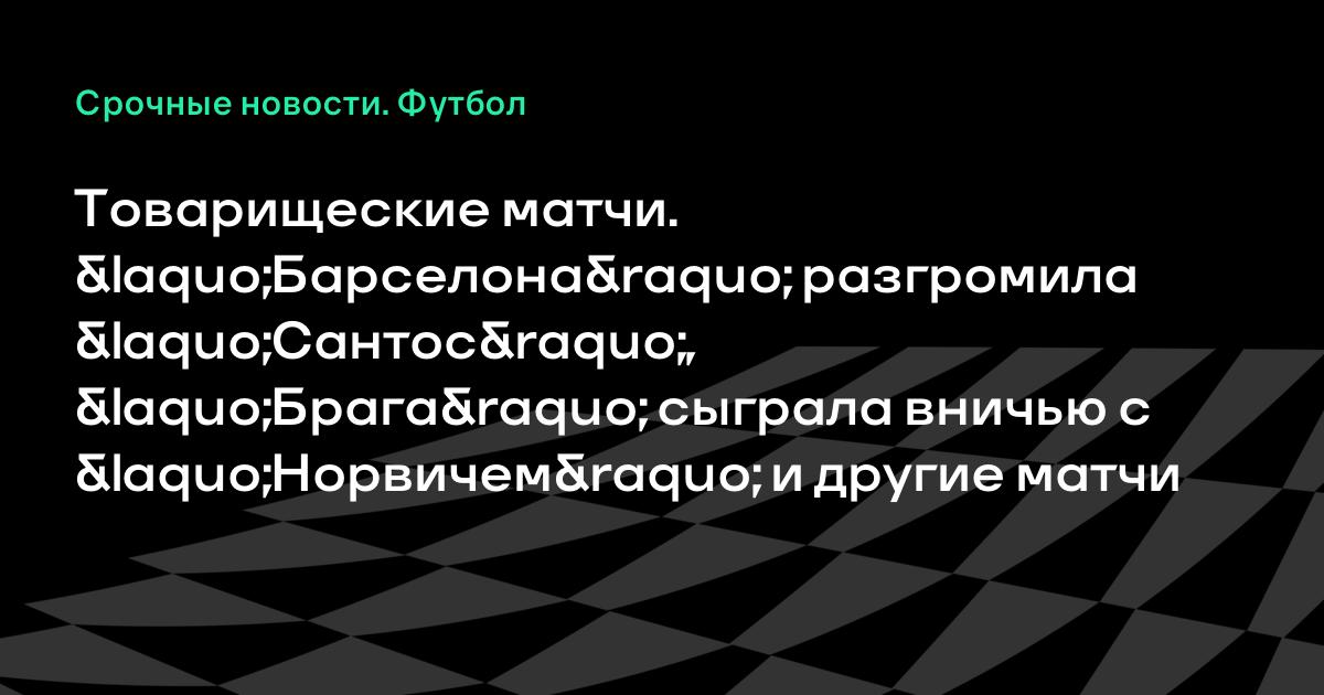 Товарищеские матчи. «Барселона» разгромила «Сантос», «Брага» сыграла вничью с «Норвичем» и другие матчи